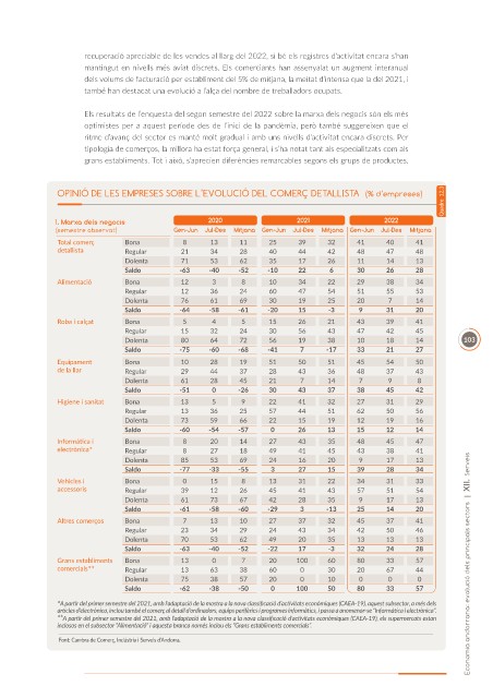 OPINIÓ DE LES EMPRESES SOBRE L’EVOLUCIÓ DEL COMERÇ DETALLISTA (% d’empreses)