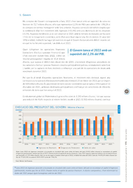 Els comptes del Govern corresponents a l’any 2022 s’han tancat amb un superàvit de caixa no