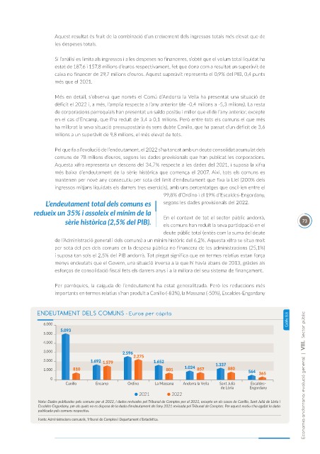 Nota: Dades publicades pels comuns per al 2022, i dades revisades pel Tribunal de Comptes per al 2021, excepte en els casos de Canillo, Sant Julià de Lòria i