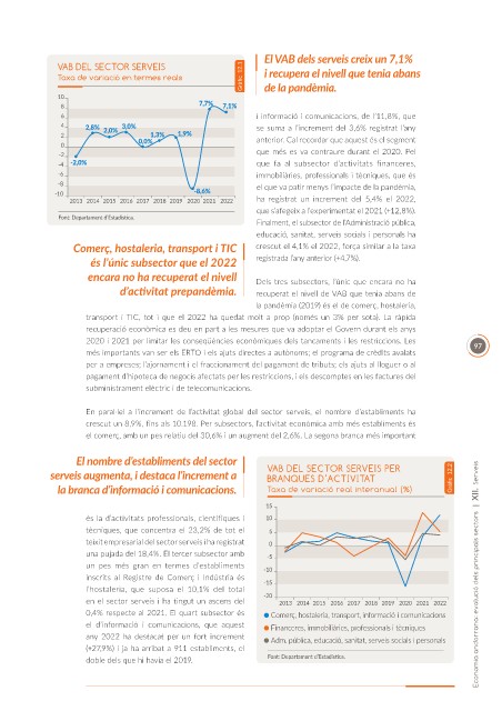 serveis augmenta, i destaca l’increment a VAB DEL SECTOR SERVEIS PER Gràfic 12.2