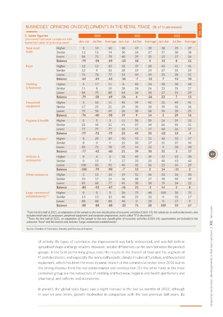 IT and electronics, and especially the more enthusiastic climate in sales of furniture and household Andorran economy: developments in the main sectors | XII. Services