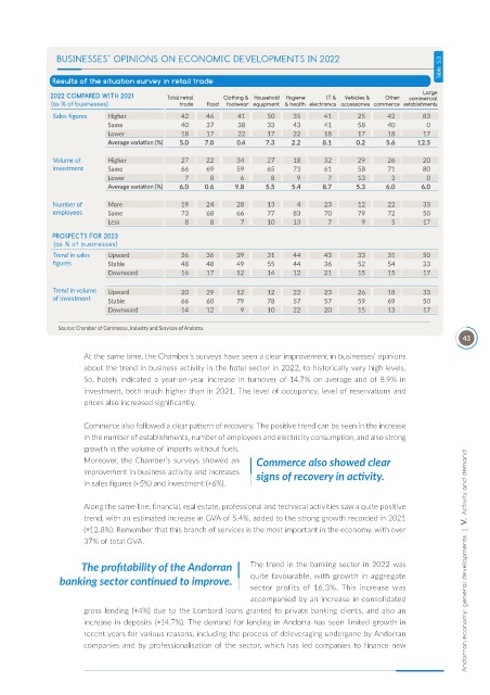 The profitability of the Andorran The trend in the banking sector in 2022 was Andorran economy: general developments | V. Activity and demand
