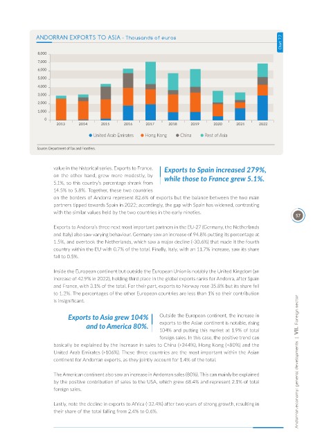 increase of 42.9% in 2022), holding third place in the global exports ranks for Andorra, after Spain