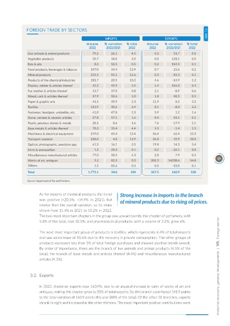 FOREIGN TRADE BY SECTORS Table 7.2