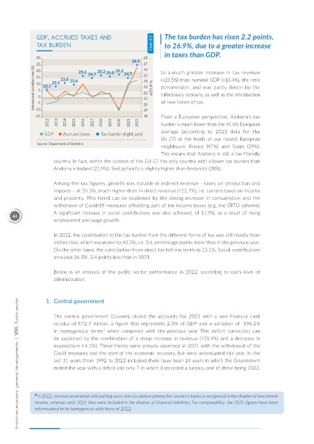 GDP, ACCRUED TAXES AND The tax burden has risen 2.2 points,