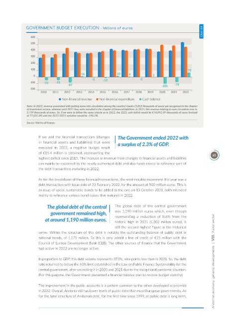 In proportion to GDP, this debt volume represents 37.3%, nine points less than in 2021. So, the debt Andorran economy: general developments | VIII. Public sector