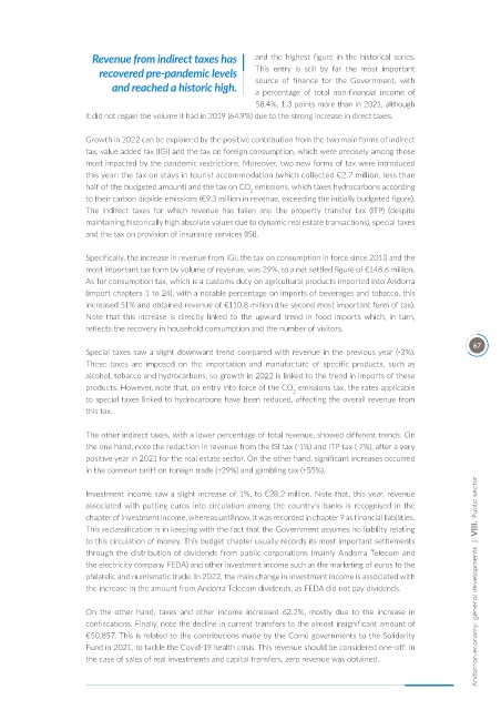 philatelic and numismatic trade. In 2022, the main change in investment income is associated with Andorran economy: general developments | VIII. Public sector