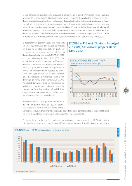 El deteriorament econòmic també ha repercutit El 2020 el PIB real d’Andorra ha caigut