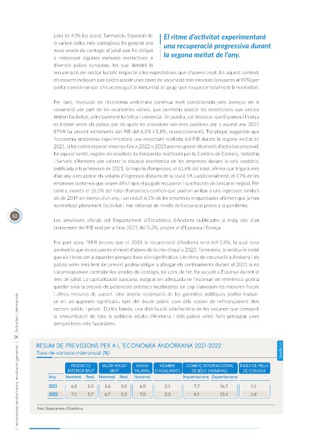 RESUM DE PREVISIONS PER A L’ECONOMIA ANDORRANA 2021-2022