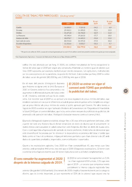 Font: Departament d’Agricultura / Associació de Fabricants de Productes de Tabac d’Andorra (AFPTA).