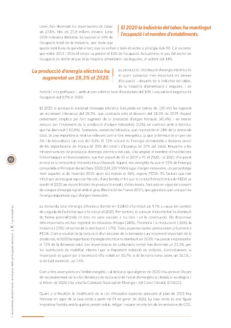 producció, el 2020 la importació d’energia elèctrica ha disminuït un 19,3% i ha passat a representar