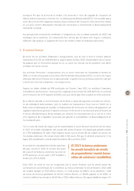 del conjunt de la banca andorrana ha estat de de prepandèmia i manté bones L’economia andorrana: evolució dels principals sectors | XII. Els serveis
