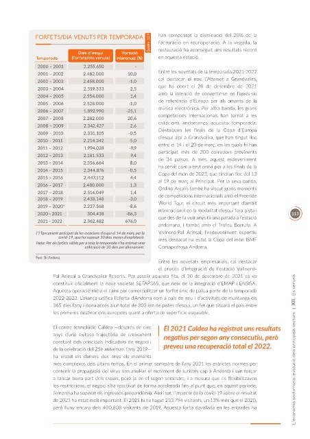 de la celebració del 25è aniversari l’any 2019— preveu una recuperació total el 2022. L’economia andorrana: evolució dels principals sectors | XII. Els serveis