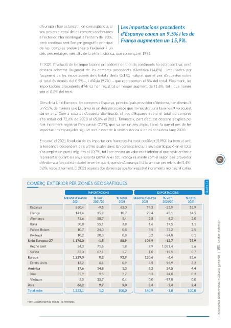 Amèrica 17,6 14,8 1,3 6,2 24,5 4,4 L’economia andorrana: evolució general | VII. Sector exterior