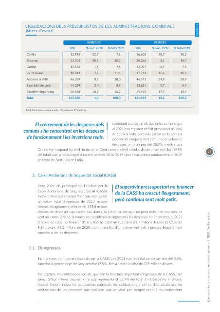 Els ingressos no financers liquidats per la CASS l’any 2021 han registrat un creixement del 3,3%, L’economia andorrana: evolució general | VIII. Sector públic