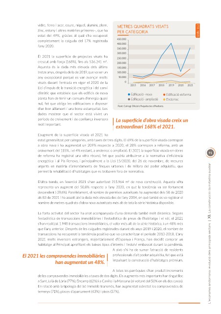transaccions ha recuperat la tendència positiva que va caracteritzar el període 2013-2018. L’any L’economia andorrana: evolució dels principals sectors | XI. La construcció i la indústria auxiliar