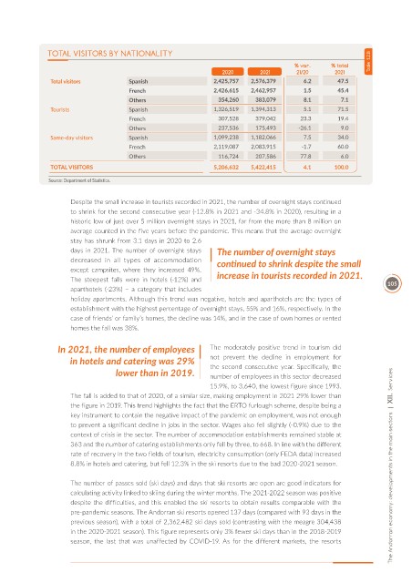 The steepest falls were in hotels (-12%) and increase in tourists recorded in 2021. 105