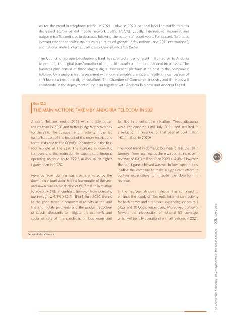 to 2020 (-4.1%). In contrast, turnover from domestic In the last year, Andorra Telecom has continued to