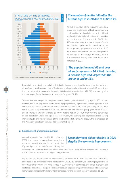 of foreigners clearly exceeds that of Andorrans in all age brackets above the age of 30. In contrast,