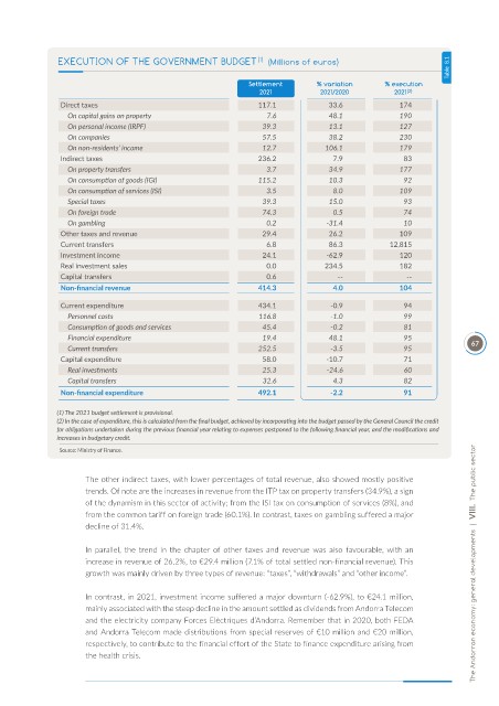 increase in revenue of 26.2%, to €29.4 million (7.1% of total settled non-financial revenue). This The Andorran economy: general developments | VIII. The public sector