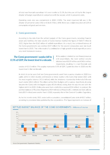 public deficit in 2021 (Canillo and Andorra la Vella). Canillo is the Comú that ended 2021 with