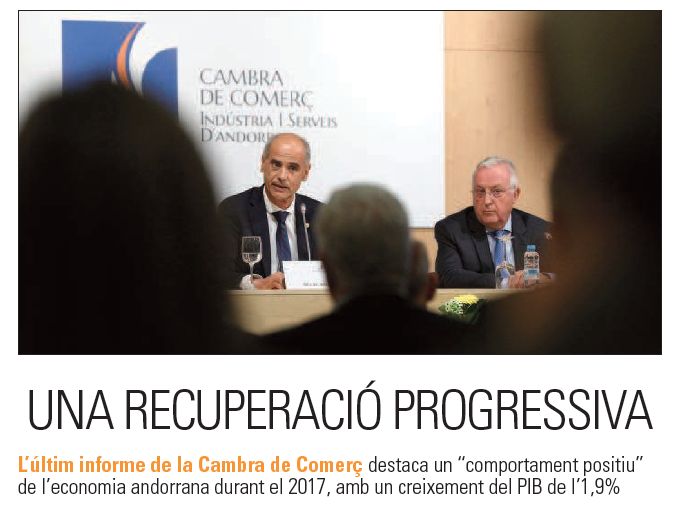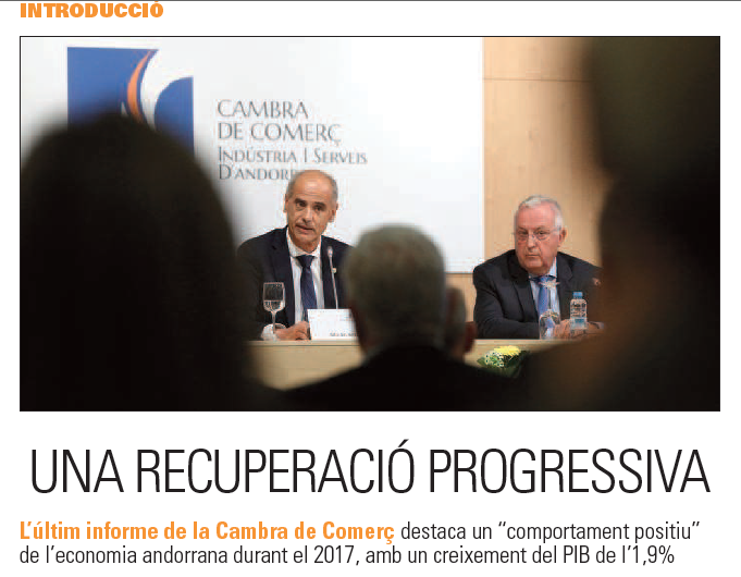 Titulat “Una recuperació progressiva”, l’article destaca principalment el comportament positiu de l’economia andorrana durant el 2017, amb un creixement del PIB de l’1,9%. Així també, parla de les bones previsions per al 2018 i del creixement dels diferents sectors en el Principat, fent especial èmfasi en la construcció (amb un creixement del VAB real del 3,5%) i dels serveis, que es mantenen com el sector més dinàmic de l’economia.